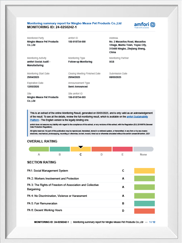 식품안전은 생명선이다 Ningbo Meace Pet Products Co., Ltd.
