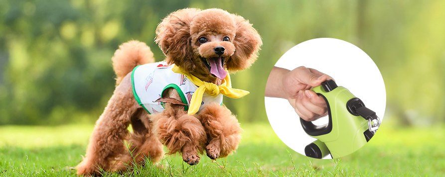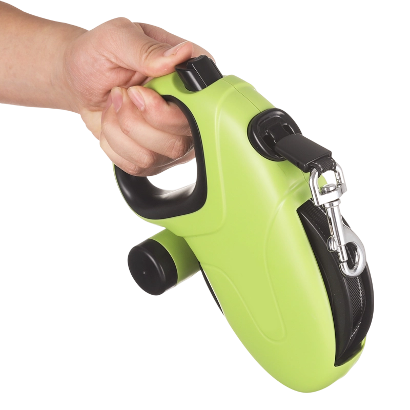 - 목줄에는 쓰레기봉투 보관 기능도 있어 애완동물 주인이 언제든지 애완동물의 뒷처리를 쉽게 할 수 있습니다. 스마트하게 디자인된 수납함은 쓰레기 봉투를 쉽게 사용할 수 있도록 하여 외출 시 쓰레기 봉투를 가져오는 것을 잊어버리는 문제를 방지하고 공공 환경의 청결을 유지합니다.