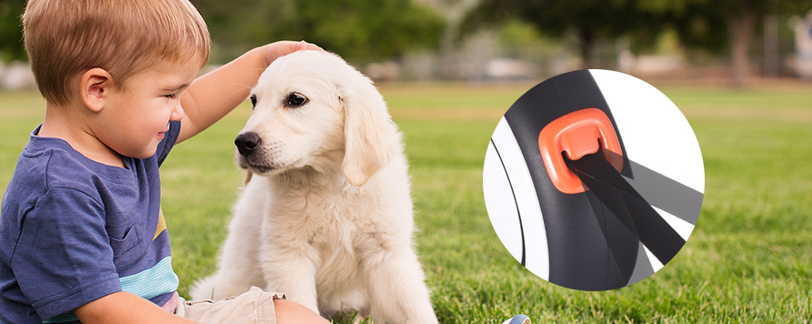 - 원버튼 잠금 메커니즘은 세련되고 편리합니다. 간단히 누르면 목줄이 단단히 고정되어 애완동물이 앞으로 뛰거나 뒤로 당기는 것을 방지합니다. 버튼은 부드럽고 민감하여 걸림이나 들러붙는 현상이 없으며 아래쪽 트리거 설계로 작동이 쉽고 빠릅니다.
